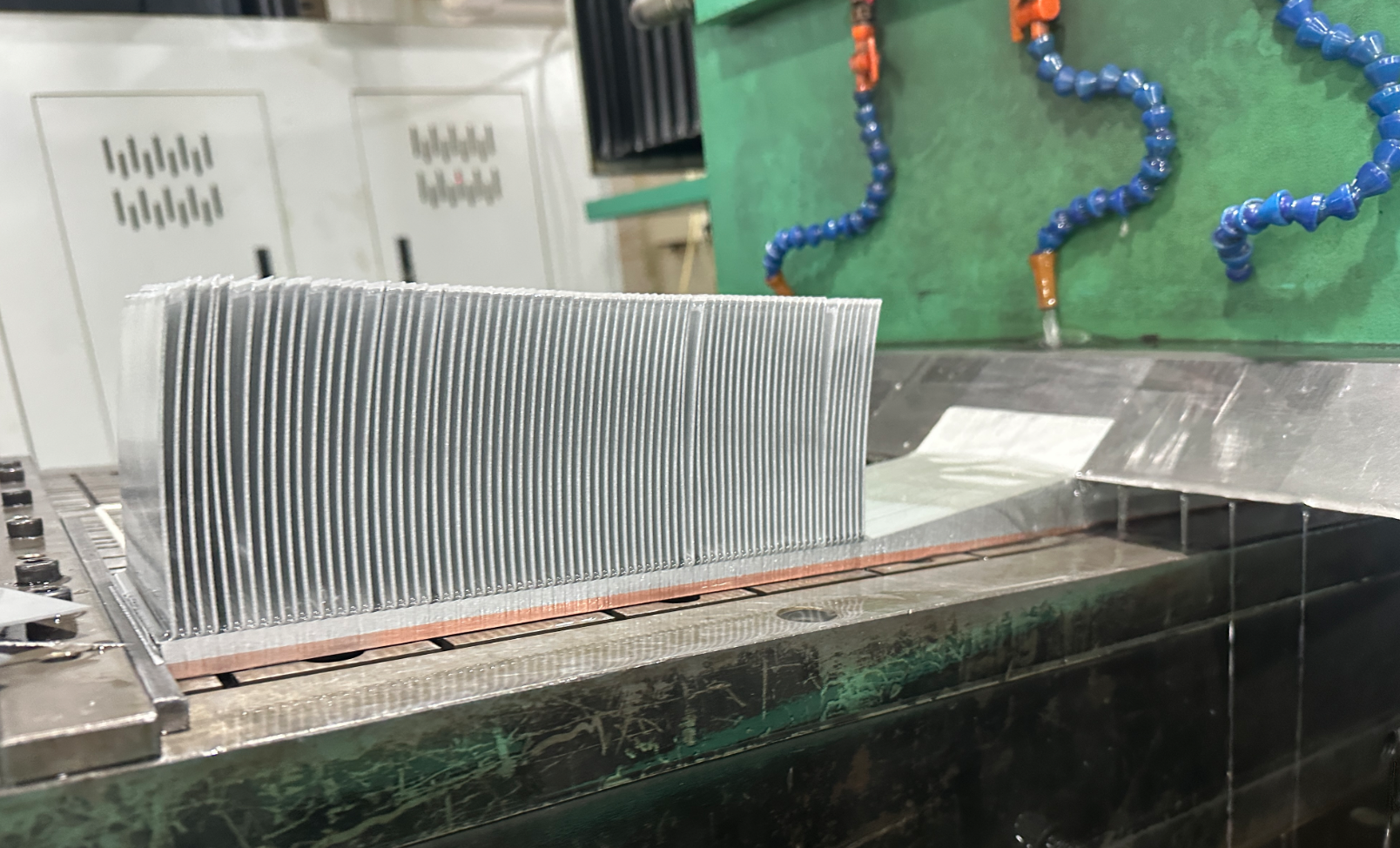 In fields such as electronic thermal management, IGBT ,new energy power systems, and rail transit, copper-aluminum composite materials have emerged as ideal alternatives to pure copper components, leveraging copper’s excellent electrical and thermal conductivity alongside aluminum’s advantages of light weight and low cost. As a solid-state welding technology, explosive welding enables high-strength metallurgical bonding between dissimilar copper and aluminum metals, yielding finished products with performance far superior to those manufactured via traditional processes like brazing and mechanical joining. This article comprehensively analyzes copper-aluminum explosive welding technology from the perspectives of fundamental principles, production procedures, troubleshooting, application scenarios, as well as advantages and limitations.skived fin heat sink.