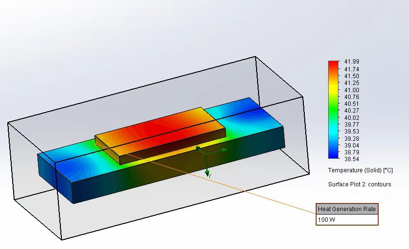 1. Under 100W heat load and 1L/min low flow rate, the spiral flow channel effectively breaks laminar flow and strengthens turbulence, reducing the maximum temperature from 49.61℃ to 41.9℃ with only 0.1MPa pressure drop.